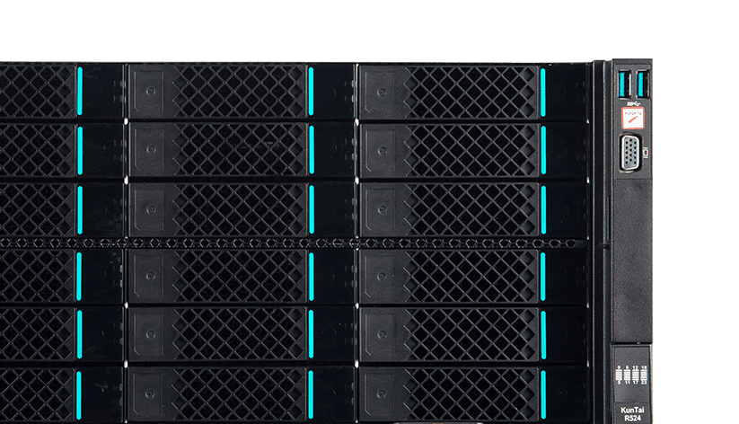KunTai R524 存储型服务器是南宫娱乐数码基于鲲鹏处理器推出的新一代 ARM数据中心服务器。主要面向存储业务,具有海量存储、高性能、低功耗以及易扩展的特点,适合为大数据分析、软件定义存 储等应用场景的工作负载进行髙效加速。